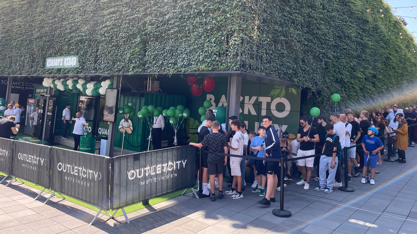 Lange Schlange bei Kebab-Eröffnung in Metzingen Liste der Share-Möglichkeiten öffnen Teilen Gemerkt Merken Drucken Teilen Liste der Share-Möglichkeiten schließen Link kopieren E-Mail Facebook WhatsApp KurznachrichtendienstX Mastodon Bluesky Threads Stand 5.7.2025, 16:38 Uhr Von Autor/in Theresa Krampfl