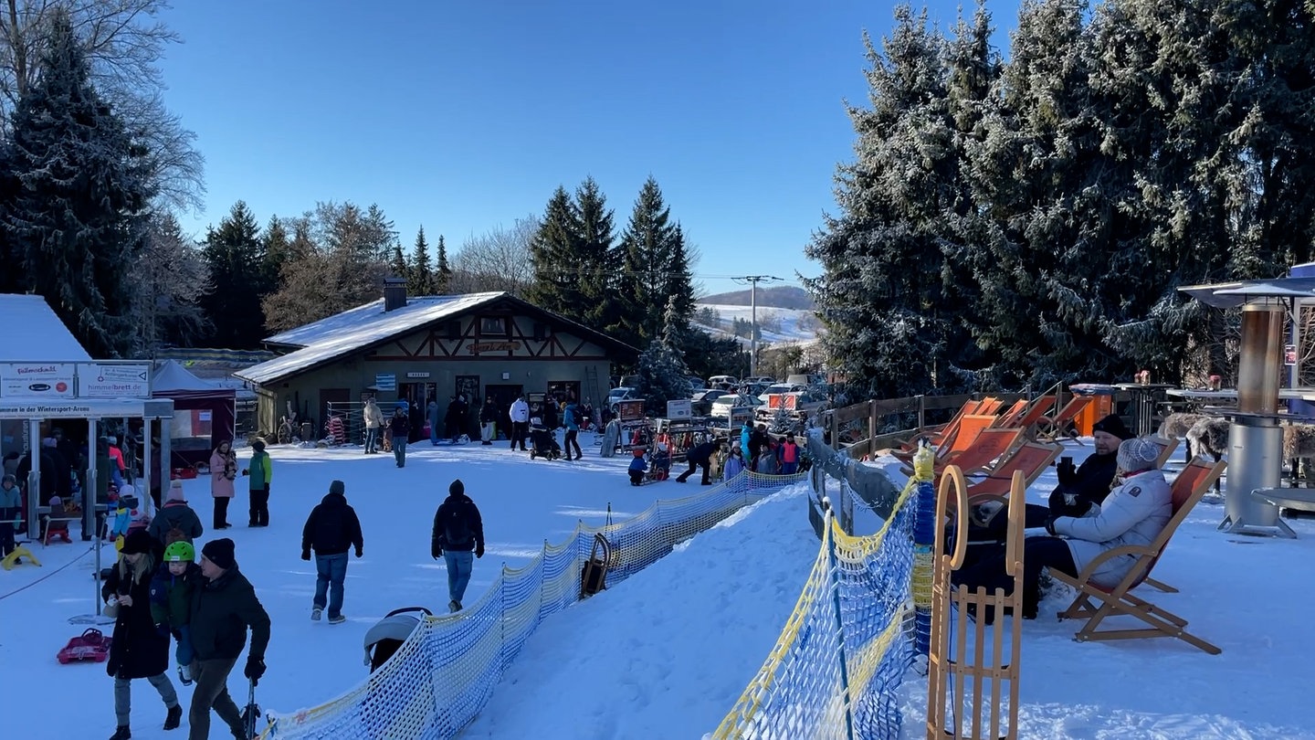 Viele Menschen haben bei eisigen Temperaturen das sonnige Winterwetter genossen. Auf der Piste der Wintersport-Arena Holzelfingen (Kreis Reutlingen) tummelten sich am Montag 400 bis 500 Menschen mit Schlitten. Allein am Sonntag waren 2.000 Besucher da, so die Betreiber. Der Lift ist derzeit für Rodler freigegeben, fürs Skifahren reicht die Menge an Schnee noch nicht aus. Allerdings hilft eine Schneekanone nach, sie besprüht den unteren Teil der Piste. Familien mit kleinen Kindern, Großeltern - sie hatten sichtlich Spaß und stärkten sich mit Crêpes, Pommes und Getränken.