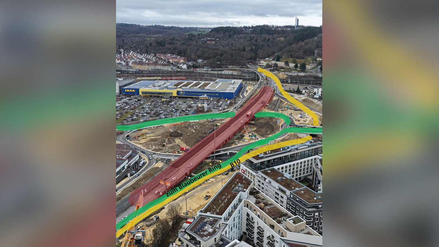 Die provisorische Straße durch eine Unterführung wurde Mitte Januar asphaltiert, "mit zugegeben nicht ganz idealen Bedingungen bei den eisigen Temperaturen", sagte Projektleiter Gerhard Fraidel von der Stadt Ulm dem SWR. Aber alles wurde rechtzeitig fertig.