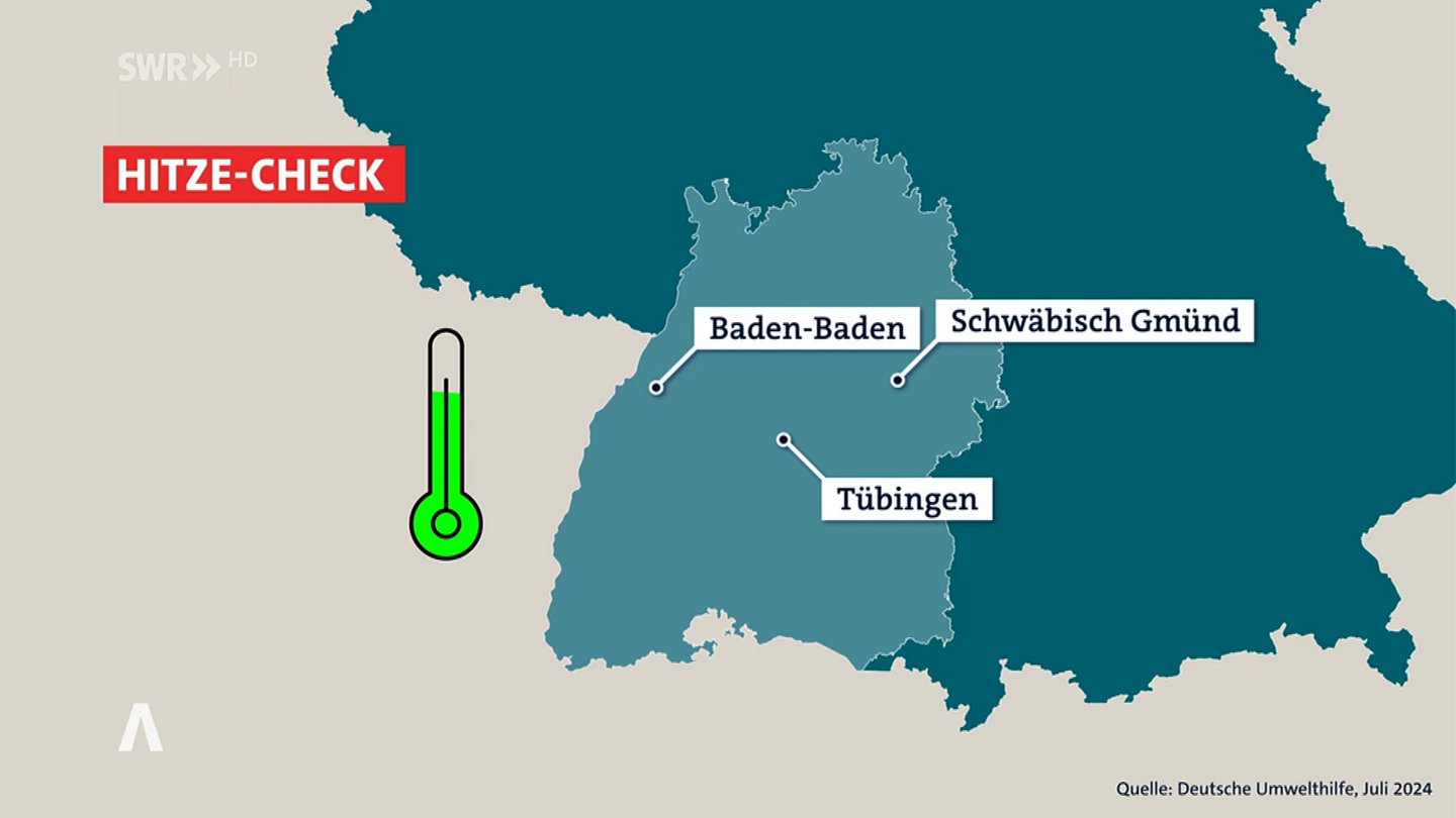 Für ihren Hitze-Check ließ die Deutsche Umwelthilfe Satellitendaten von 190 Städten in Deutschland auswerten, untersuchte Flächenversiegelung, Baum- und Grünbestände. Schwäbisch Gmünd schnitt dabei so gut ab, dass die Stadt mit der Grünen Karte ausgezeichnet wurde. Im Gegensatz dazu erhielten in Baden-Württemberg Heilbronn mit dem schlechtesten Ranking sowie Ludwigsburg, Mannheim, Rastatt, Waiblingen und Esslingen Rote Karten.