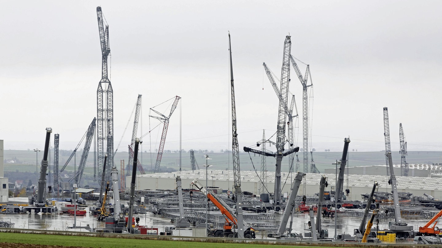 Für seine Expansionspläne hat der Kranhersteller Liebherr in Ehingen (Alb-Donau-Kreis) im vergangenen Jahr 54 Hektar Land von der Stadt gekauft und somit seinen bestehenden Standort im Stadtteil Berg auf rund 150 Hektar erweitert. Bereits beim offiziellen Spatenstich im September vergangenen Jahres war klar: Die Pläne, neue Lager- und Produktionsflächen zu bauen, müssen an die aktuelle wirtschaftliche Lage angepasst werden. Vorerst wird lediglich die Hälfte der neuen Fläche erschlossen. Das sei allerdings keine Abkehr vom Standort Ehingen, versichert das Unternehmen.