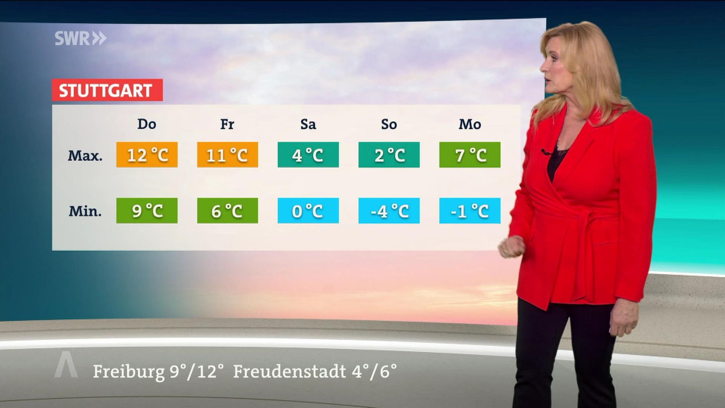 Der Vormittag startet in Baden-Württemberg bereits regnerisch, lediglich im Nordosten kann ab und zu die Sonne durchkommen. Im Laufe des Nachmittags breiten sich die dichten Wolkenfelder im ganzen Land aus und sorgen für ergiebigen Regen. Insbesondere an den Südwesthängen und Westhängen des Schwarzwalds kann es ordentlich schütten. Dabei ist es mild - am Nachmittag erreichen die Temperaturen in Karlsruhe bis zu 13 Grad. In Freiburg, Heilbronn und Mannheim sind zu 12 Grad möglich.