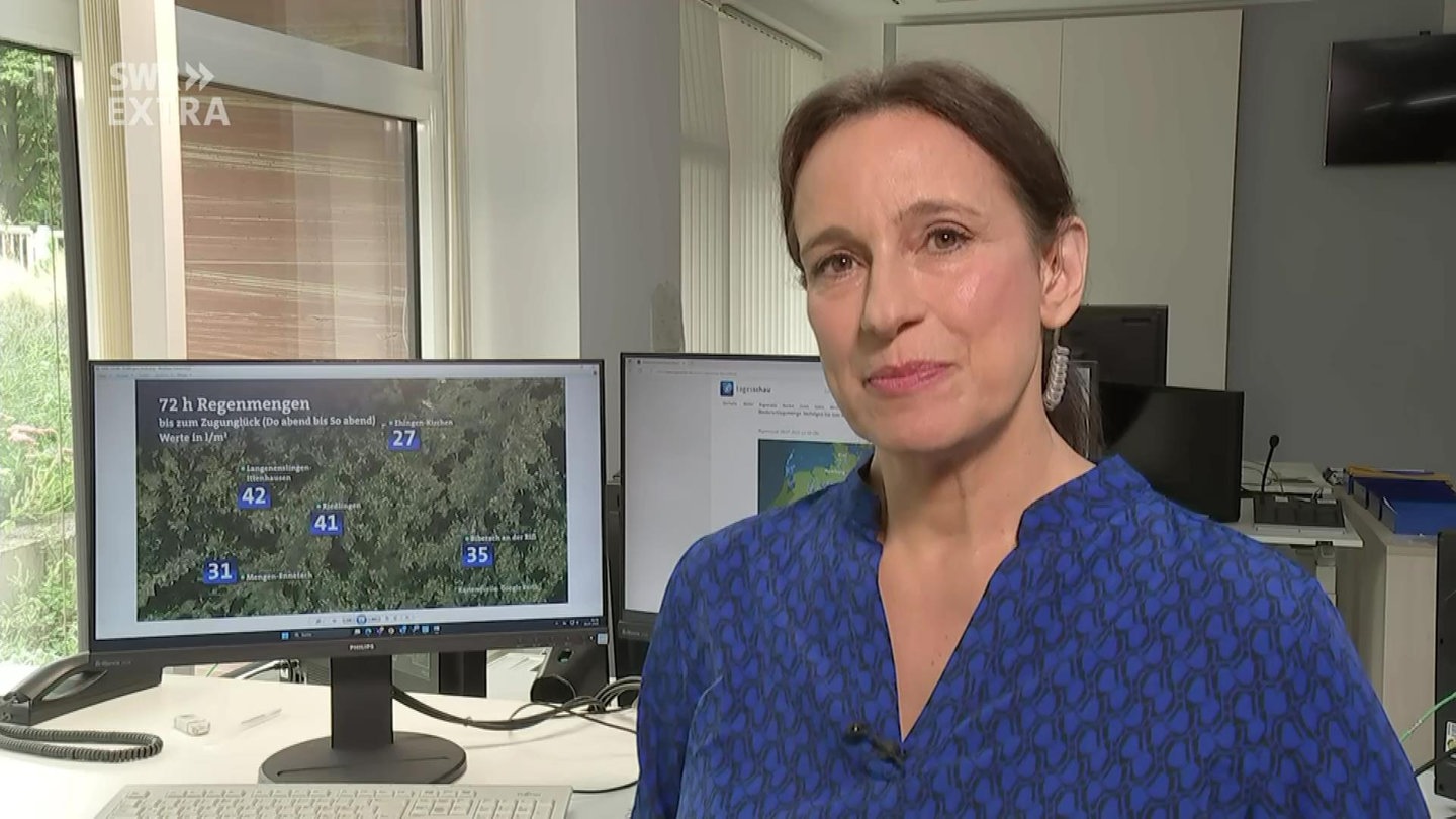 SWR-Wetterexpertin Laura Di Salvo sagte heute im SWR Extra, seit Donnerstag seien mehr als 40 Liter Regen pro Quadratmeter über Riedlingen niedergegangen - ungewöhnlich viel im Vergleich zum üblichen Monatsdurchschnitt. Auch in den kommenden Tagen sei mit Schauern zu rechnen, allerdings nicht mehr mit solch massiven Regenmassen. Das Zugunglück bei Riedlingen ist nach aktuellen Erkenntnissen durch einen Erdrutsch verursacht worden, der durch Starkregen entstand.