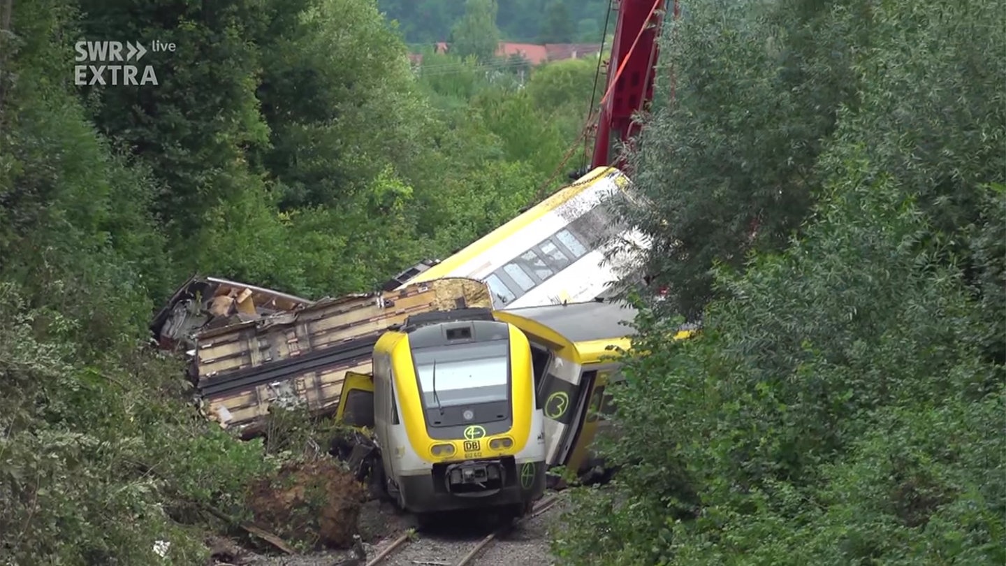 SWR-Bahnexperte Frieder Kümmerer hat im SWR Extra vom Mittag die Gegebenheiten vor Ort eingeordnet und betont, es gebe auf solchen Strecken keine allgemeinen Absicherungsmechanismen - die richteten sich immer nach den jeweiligen Verhältnissen. Zur Unfallursache hatten Polizei und Staatsanwaltschaft am Morgen mitgeteilt, ein Abwasserschacht sei vermutlich durch Starkregen übergelaufen. Das Wasser habe dann einen Erdrutsch an der Böschung der Strecke ausgelöst und wohl die Entgleisung verursacht.
