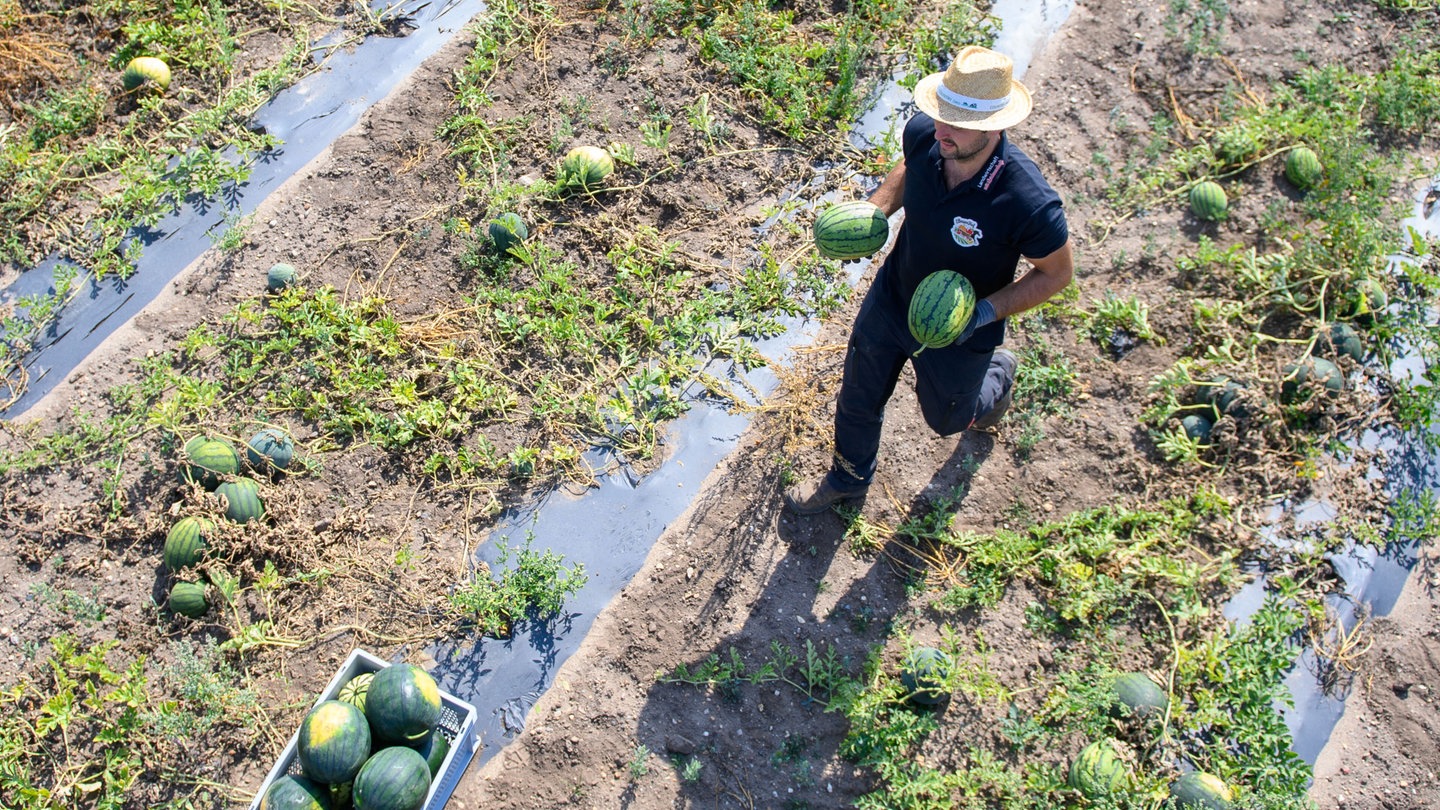 Das Feld in der Pfalz ist schon vorbereitet. Die Folie hat schon einige Jahre Spargel hinter sich und wird nun für den Melonenanbau genutzt. Bis die Pflanzen hier einziehen dürfen, müssen sie aktuell aber noch ein paar Wochen warten. Zu groß die Gefahr, dass es doch nochmal Frost gibt.