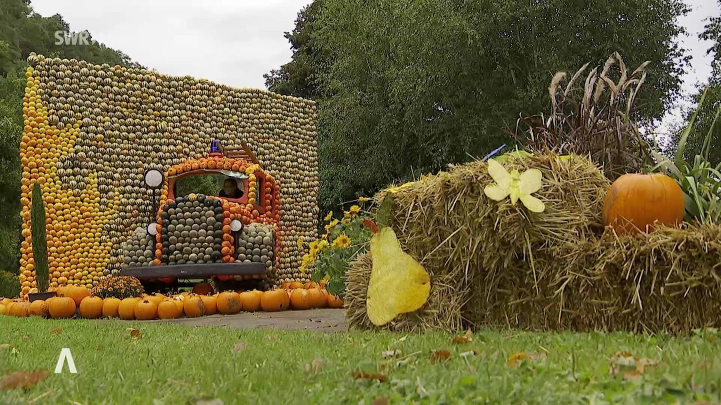 Der Sommer geht langsam in den Herbst über. Ein Grund zur Freude, denn: Es ist wieder Kürbiszeit - auch auf der Gartenschau. Insgesamt rund 40.000 Kürbisse sind verarbeitet worden zu echten Kunstwerken. Ob ein Feuersalamander, ein flammendes Herz, Fred Feuerstein und sein Gefährt oder auch die Kinderfigur Feuerwehrmann Sam - hier ist für jeden etwas dabei.