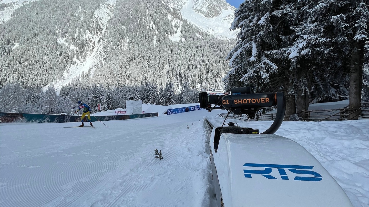 So zum Beispiel beim Biathlon. Die Wettbewerbe finden in Antholz statt - und zwar mit den Systemen von RTS. "Wir haben zwei Schienenkameras. Eine ist auf der Huberalm, bergauf und um die Kurve. Und dann ist eine Schienenkamera an der Ziellinie im Stadion", sagt der stellvertretende Geschäftsführer von RTS, Kai Gundacker.