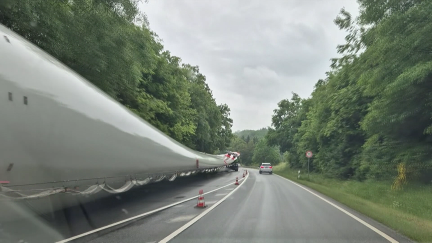 Die Lkw hatten Rotorblätter für Windkraftanlagen geladen - jedes etwa 80 Meter lang. Bevor die Transporter weiterfahren konnten, mussten erst umfangreiche Vorbereitungsarbeiten stattfinden.
