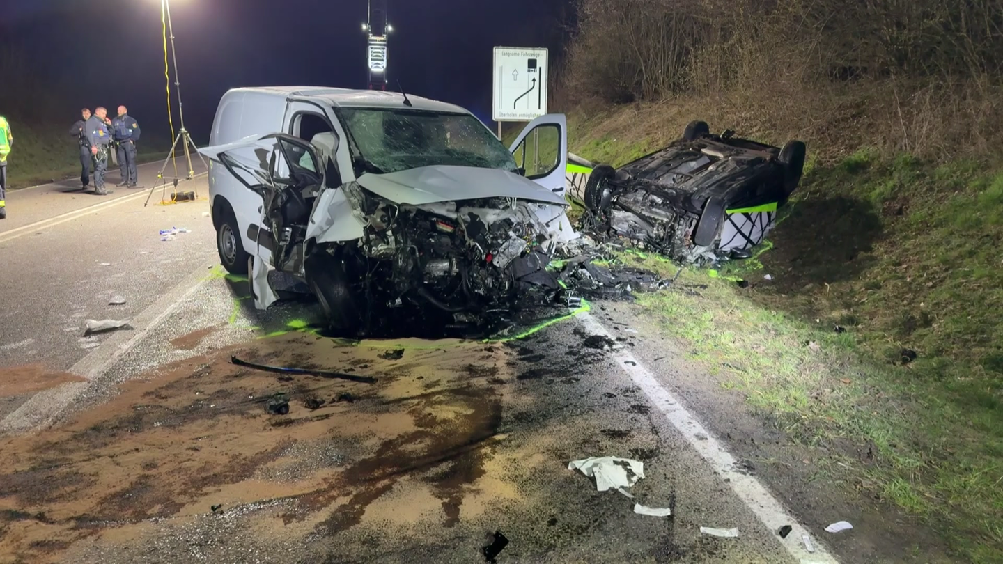 Die Landstraße war für die Dauer der Ermittlungen voll gesperrt. Um 3 Uhr gab die Polizei die Strecke wieder frei.