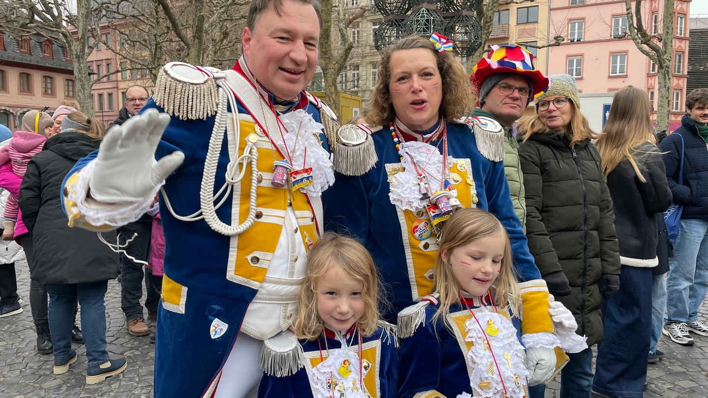 Mehrere hundert Menschen haben sich am Sonntag am Liebfrauenplatz in Mainz in Fastnachtsstimmung gesungen. Einige waren verkleidet, viele hatten Fastnachtsschals an und alle waren gut gelaunt.