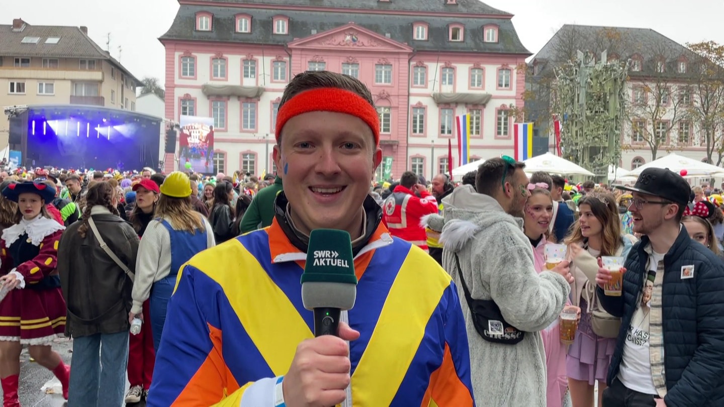 Die Party auf dem Schillerplatz ging offiziell bis 20 Uhr - mit vielen Mainzer Fastnachtsgrößen auf der Bühne. Mit dabei waren unter anderem Thomas Neger und die Humbas, die Mainzer Hofsänger, Doppelbock und Oliver Mager. Der Zutritt zur der Party auf dem Schillerplatz war allerdings begrenzt. Wer dabei sein wollte, musste sich im Vorfeld Eintrittskarten besorgen. Der Mainzer Carneval Verein (MCV) hatte die Eintrittskarten verlost. Wer Glück hatte, konnte sich eine Karte für 7 Euro kaufen.