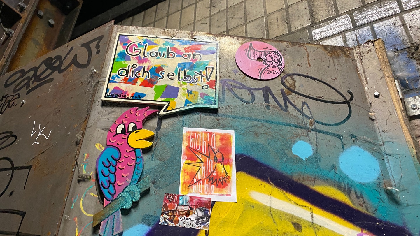 Street-Art gibt es in Mainz überall zu entdecken, erzählt Dominik Mahr. Im Tunnel in der Nähe des Hauptbahnhofs ist fast an jeder Stehle, an jedem Pfosten, an jeder Wand ein kleines Kunstwerk versteckt. Besprühte Schallplatten, minikleine Vogelhäuschen, bunte Fliesen und jede Menge Aufkleber mit ganz unterschiedlichen Motiven - viele Künstler ließen sich von Gegenständen oder auch besonderen Materialien inspirieren. "Unsere Intention als Street Artists ist, dass wir etwas Positives in die Welt senden wollen. Das ist unsere Stadt und wir möchten die auch mitgestalten", erklärt Mahr.