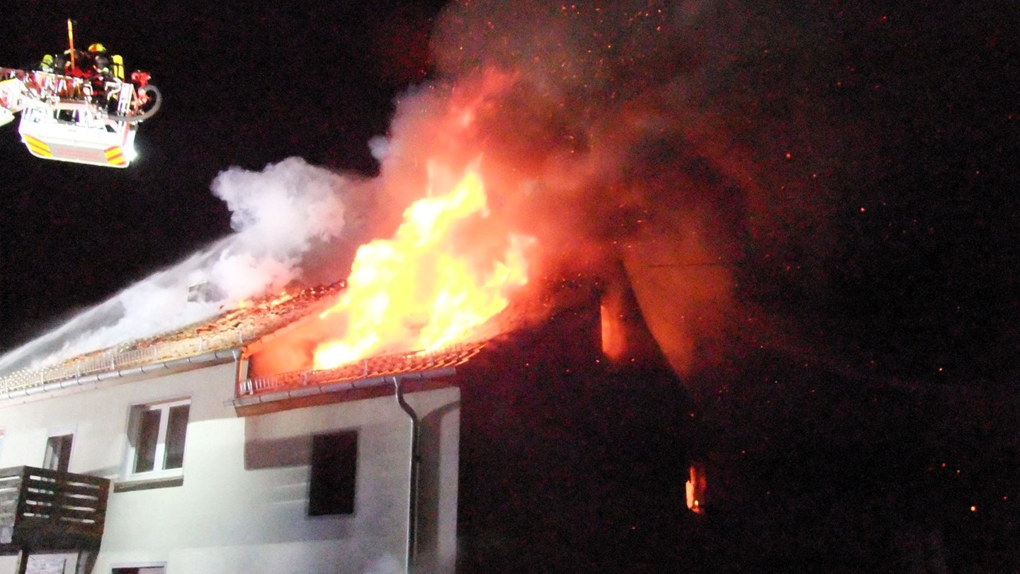 In Spabrücken im Kreis Bad Kreuznach ist die Feuerwehr am Freitagabend zu einem Großeinsatz ausgerückt. Im Ortskern brannte der Dachstuhl eines Wohnhauses.