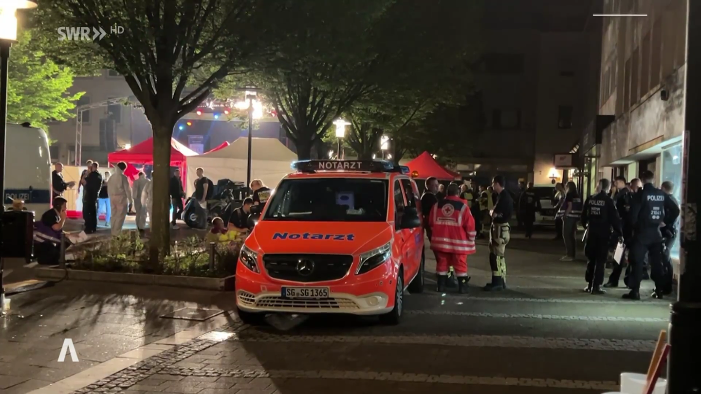 Bei dem Angriff auf einem Stadtfest waren am Freitagabend drei Menschen getötet worden. Acht weitere Menschen wurden verletzt, fünf davon schwer. Die Polizei in Nordrhein-Westfalen stufte die Tat wegen des zielgerichteten Vorgehens des Täters als Anschlag ein.