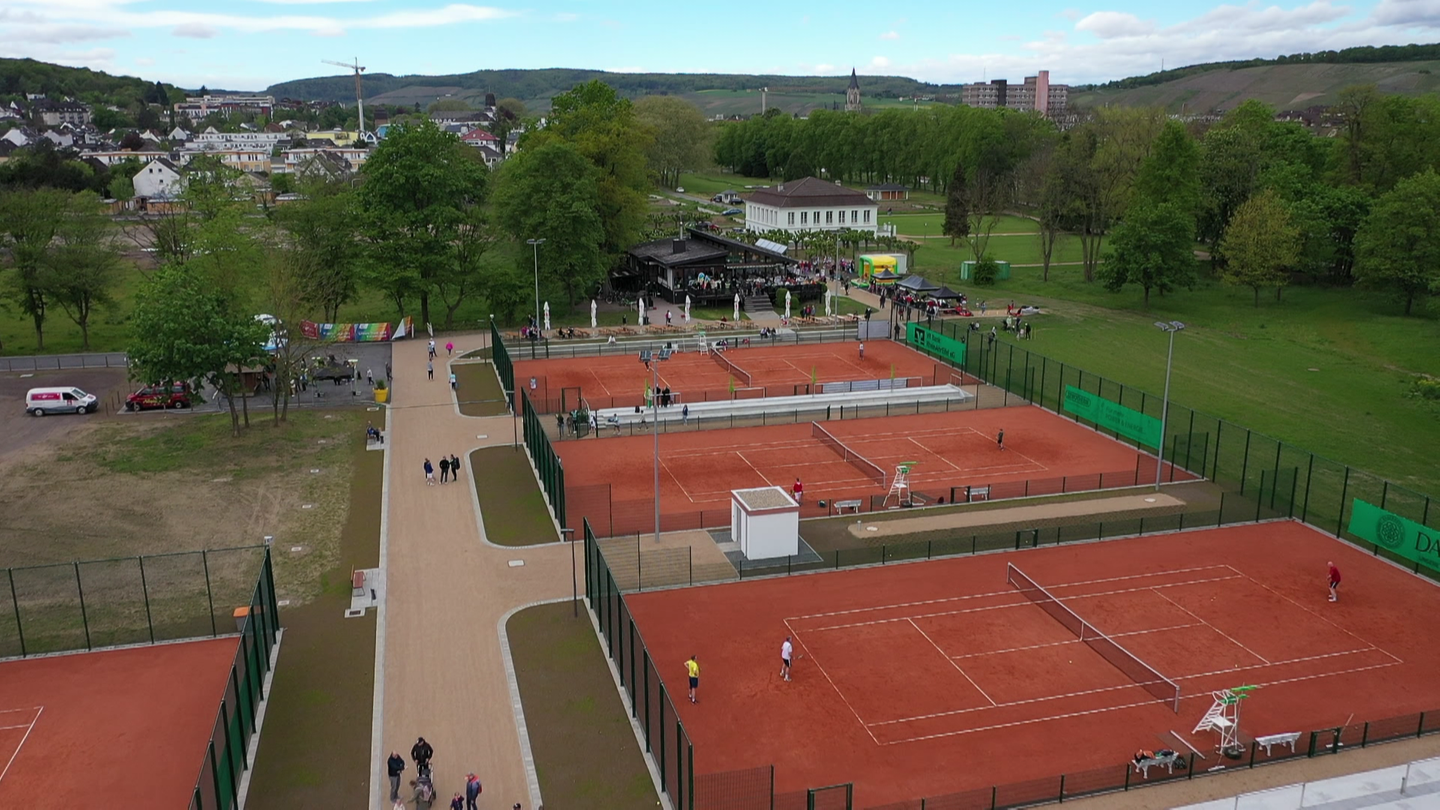 Der HTC Bad Neuenahr ist einer der größten Tennisvereine in Rheinland-Pfalz. Durch die verheerende Flut im Ahrtal war 2021 fast die gesamte Tennisanlage zerstört worden. Heute feierten die Mitglieder einen Meilenstein des Wiederaufbaus: Auf sechs neuen Plätzen kann jetzt wieder Tennis gespielt werden.