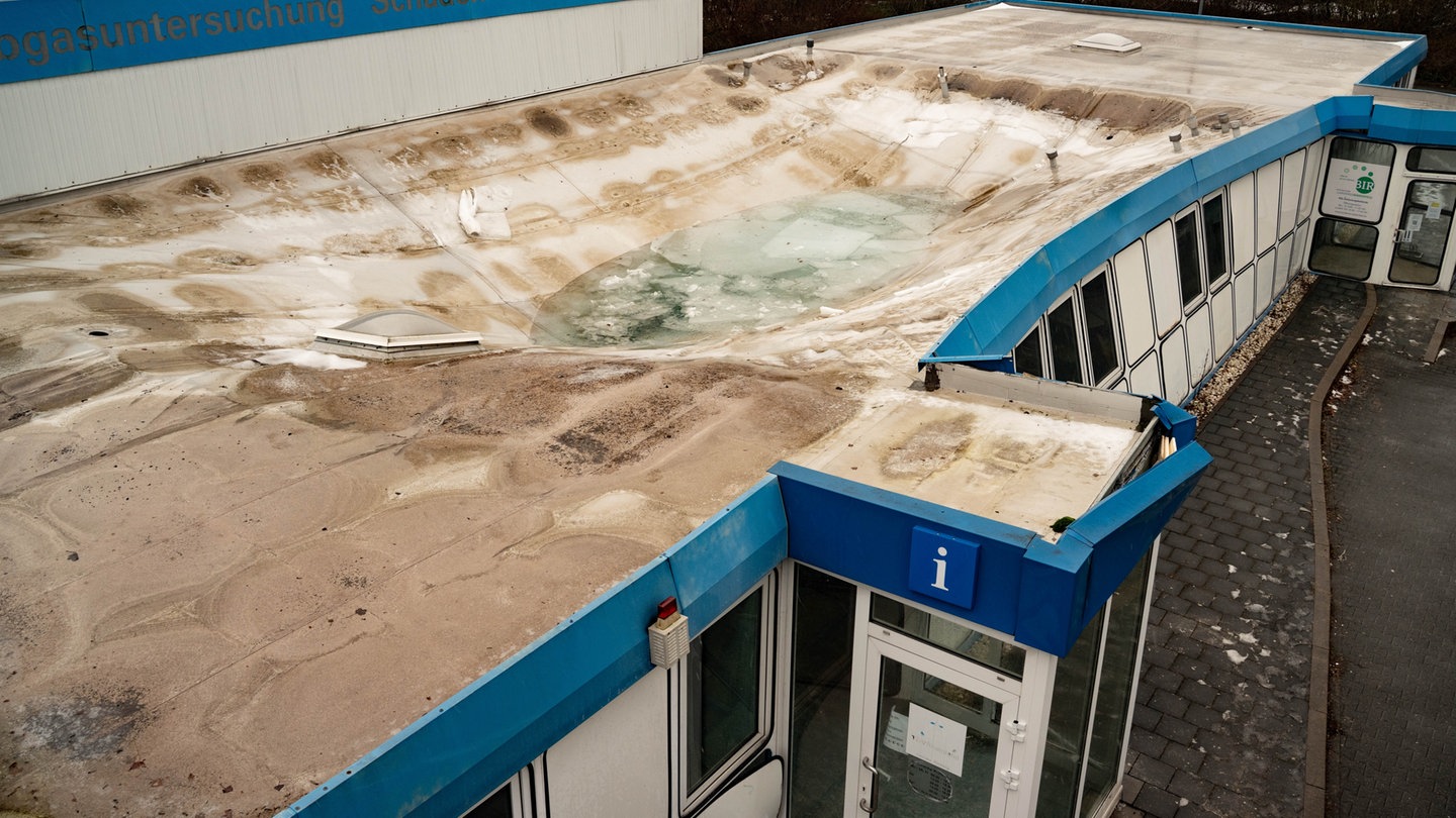 Das Dach des alten TÜV Gebäudes in Birkenfeld hielt der Schnee- und Eislast nicht stand und brach teilweise ein. Die Feuerwehr ist vor Ort. Das Gebäude stand leer.