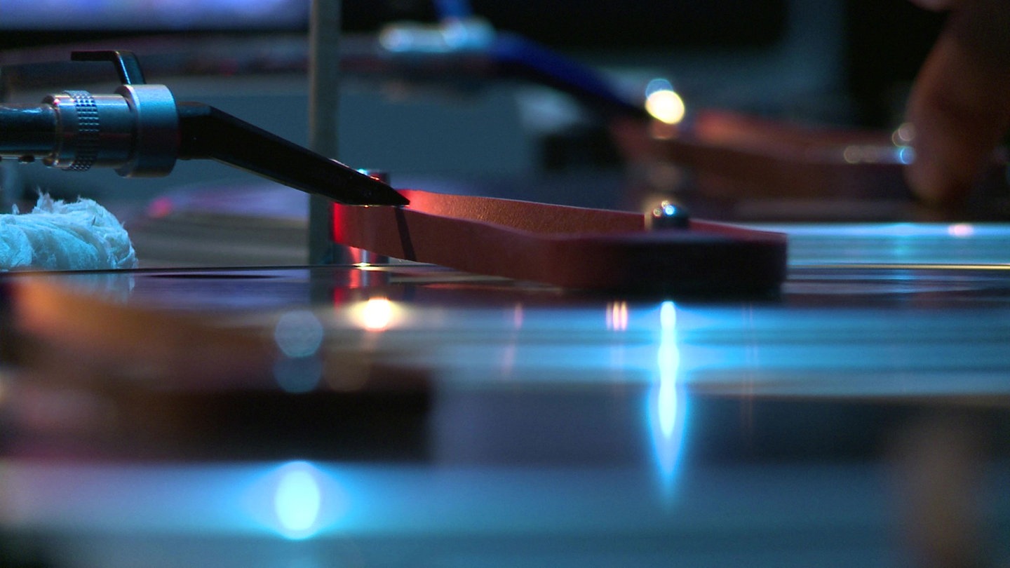 When the SWR invited us to use the infrastructure of the ZKM for our research in the run-up to Arts Birthday 2011, we decided for the first time to record our tinkering with the Octogrammoticum in multitrack mode. Although it may sometimes sound like it, we have never used effects when working with prepared turntables. While we wanted to remain purist in recording the raw material for the present work to capture the different noises, sounds, and acoustic textures in their uniqueness, we decided after reviewing the material to use some rudimentary techniques such as cutting, separating the individual tracks, and multitrack mixing to enable us to explore a new approach to the material.