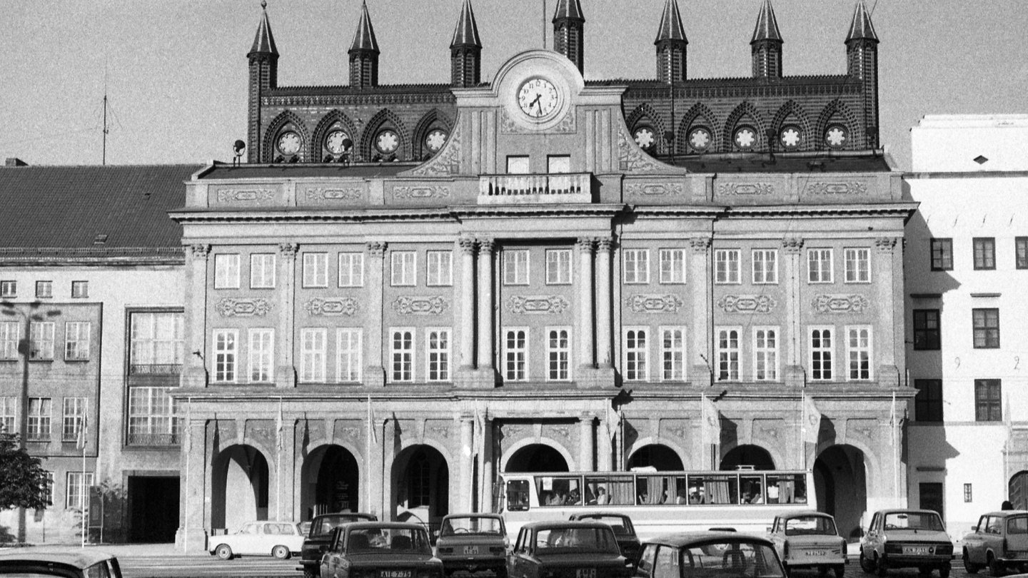 Demonstranten haben sich vor dem Rostocker Rathaus versammelt. Schließlich kommt Oberbürgermeister Henning Schleiff heraus und beginnt eine längere Diskussion mit den Protestierenden auf dem Thälmannplatz – über alle möglichen Missstände, die die Bürger beschäftigen, die Wohnungsnot, die Ausreiseproblematik oder die Vergünstigungen, die Stasi-Mitarbeiter bekommen.