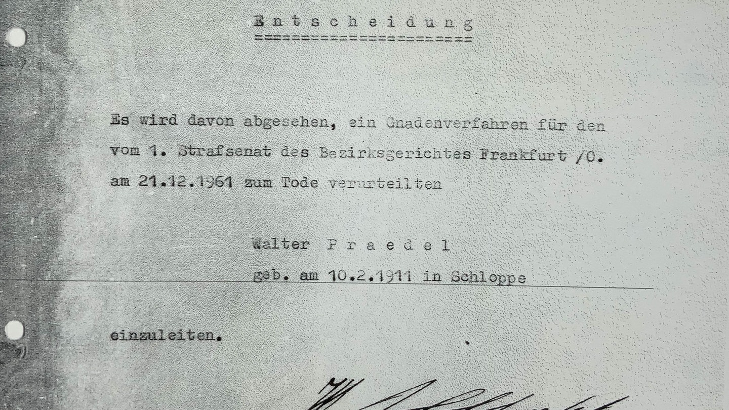 Abgesegnet von der Justizministerin Hilde Benjamin und vom Minister für Staatssicherheit Erich Mielke erging nach einem Verhandlungstag das Todesurteil.