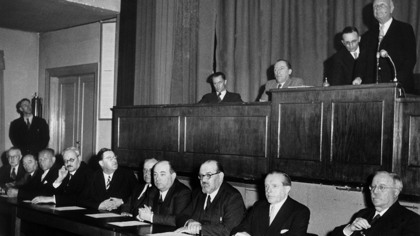 Am 14. September 1948 erläutert Theodor Heuss die „Londoner Empfehlungen“. Heuss war damals Landtagsabgeordneter in Württemberg-Baden und Vorsitzender der liberalen Parteien in der US-amerikanischen Besatzungszone. Im September 1949 wurde er Bundespräsident.