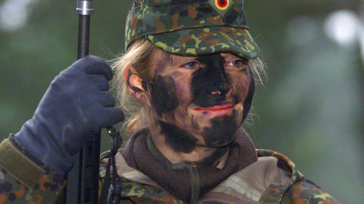 Für junge Männer galt im Jahr 2001 noch die alte Wehrpflicht, Frauen dagegen durften der Bundeswehr zwar dienen, nicht jedoch an der Waffe.