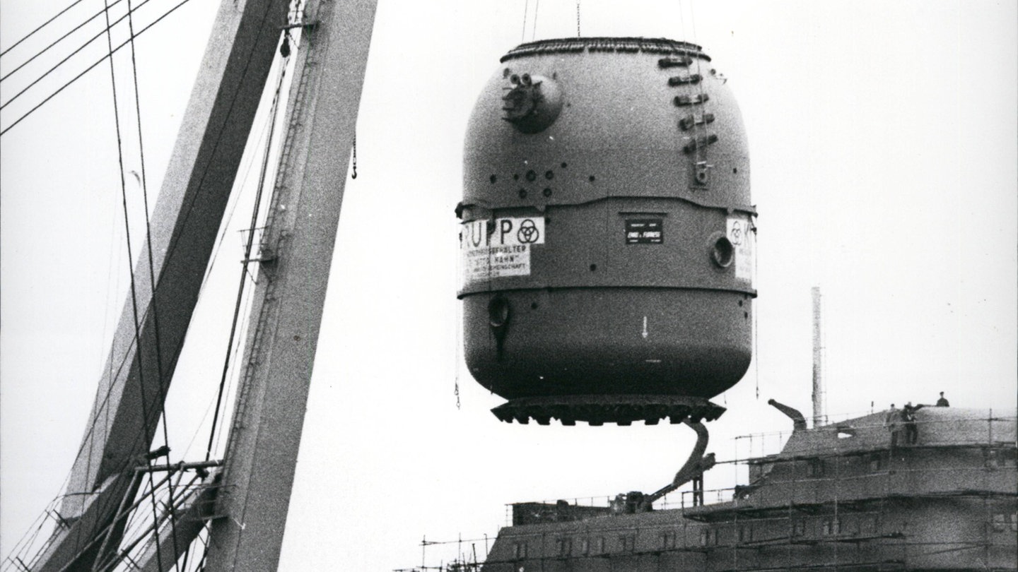 Die Vorbereitung für den ersten deutschen Atomfrachter "Otto Hahn" gehen voran. Er entsteht in den Kieler Howaldtswerken, im September 1965 wird der Reaktor eingebaut – samt Auffangbehälter für Brennelemente.