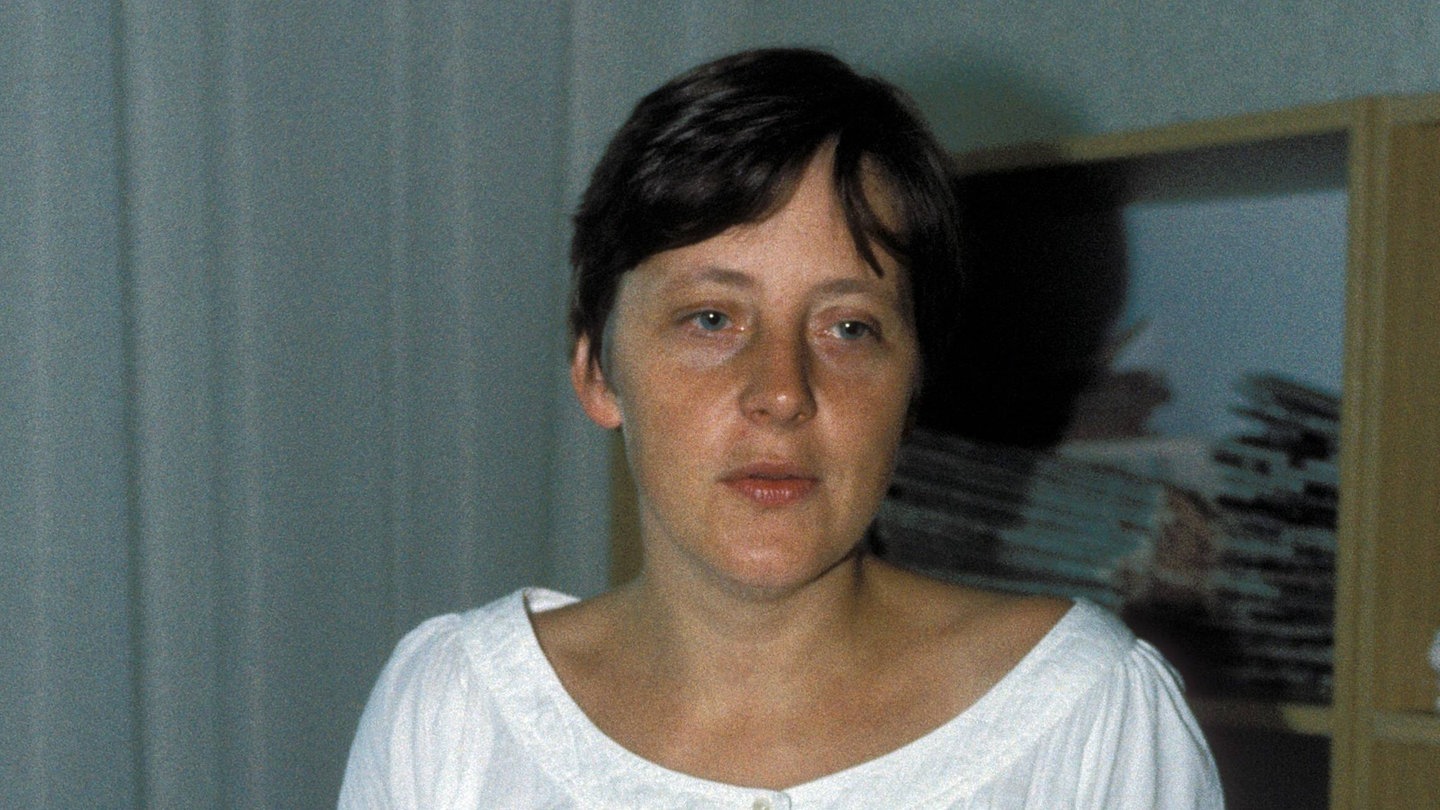 DDR-Regierungssprecherin Angela Merkel wendet sich mit einem Appell an die Presse.