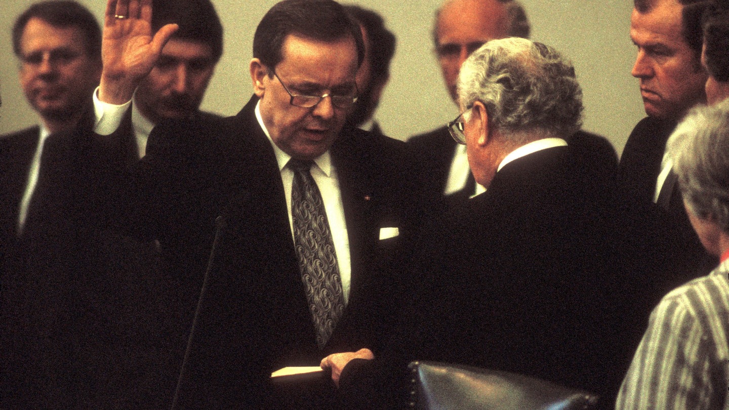 Erster Bundesumweltminister wurde Walter Wallmann (1932 - 2013) von der CDU; er trat das Amt am 6. Juni 1986 an. Hier ein Interview mit ihm im Hessischen Rundfunk vom 4. Juni 1986, also kurz vor dem Amtsantritt.