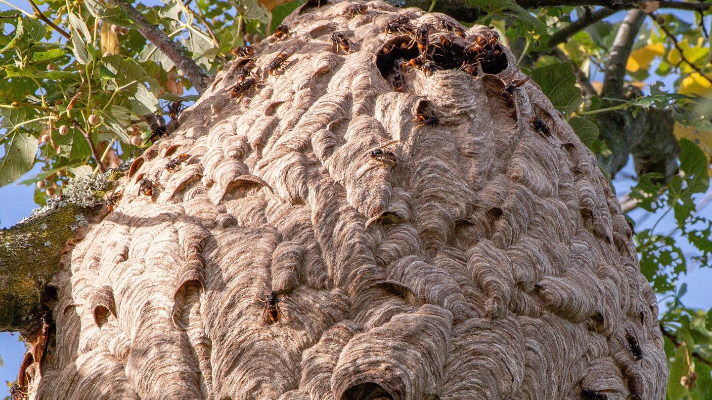 Die Asiatische Hornisse gilt mittlerweile bei uns als etablierte Art. Da sie sich auch von Honigbienen ernährt, ist sie den Imker*innen ein Dorn im Auge. Wer bei sich zu Hause Nester der Asiatischen Hornisse entdeckt, sollte dies melden und sich Hilfe holen.