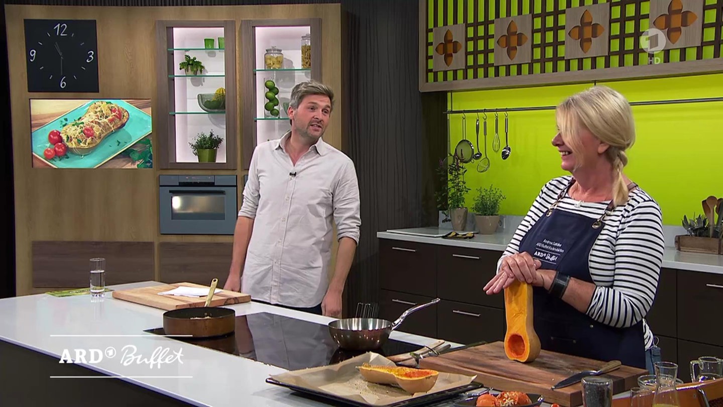 Rezept: Gefüllter Butternut-Kürbis von Andrea Safidine | Ratgeber: Richtig sparen. Mit Claudia Müller, Finanz-Beraterin | Ratgeber: Respektvoller Umgang. Mit Florence Brokowski-Shekete, Pädagogin und Autorin | einfach gesund: Gymnastik. Mit Lara Schäffer, Yogalehrerin