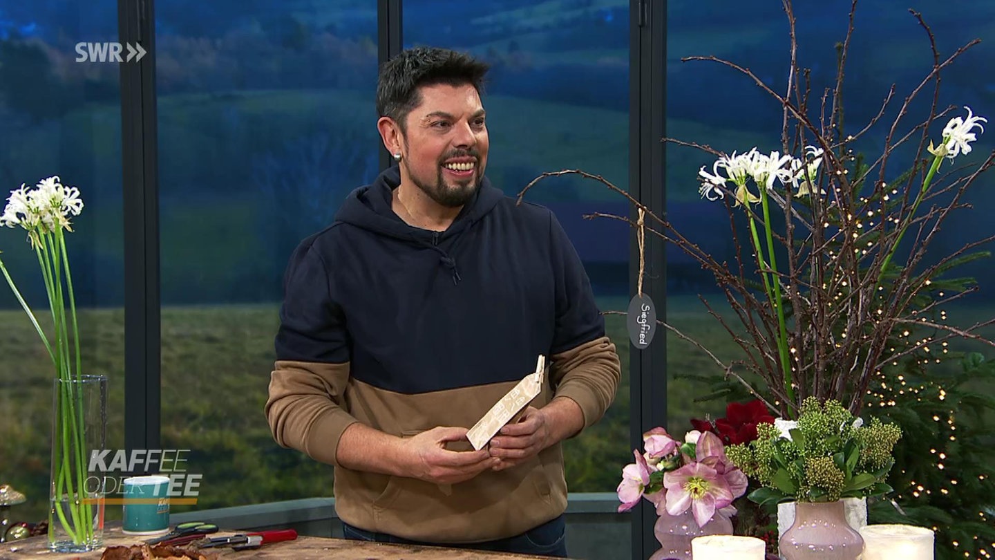 Am Barbaratag werden traditionell einzelne Obstbaumzweige geschnitten, die an Weihnachten in voller Blüte stehen sollen. Florist Thomas Gröhbühl setzt diese schlicht, aber stylisch in einer besonderen Vase in Szene.