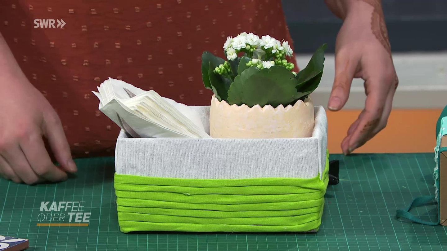 Aus alt mach neu Aufbewahrungskorb aus altem Karton und Stoffresten basteln