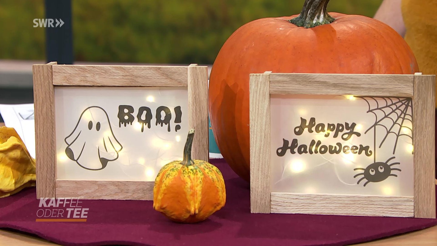 Eine gruselige Deko-Idee für Halloween ist dieser beleuchtete Bilderrahmen. Aus Transparentpapier und ein paar Holzklötzchen ist er schnell gemacht und sieht einfach toll aus!