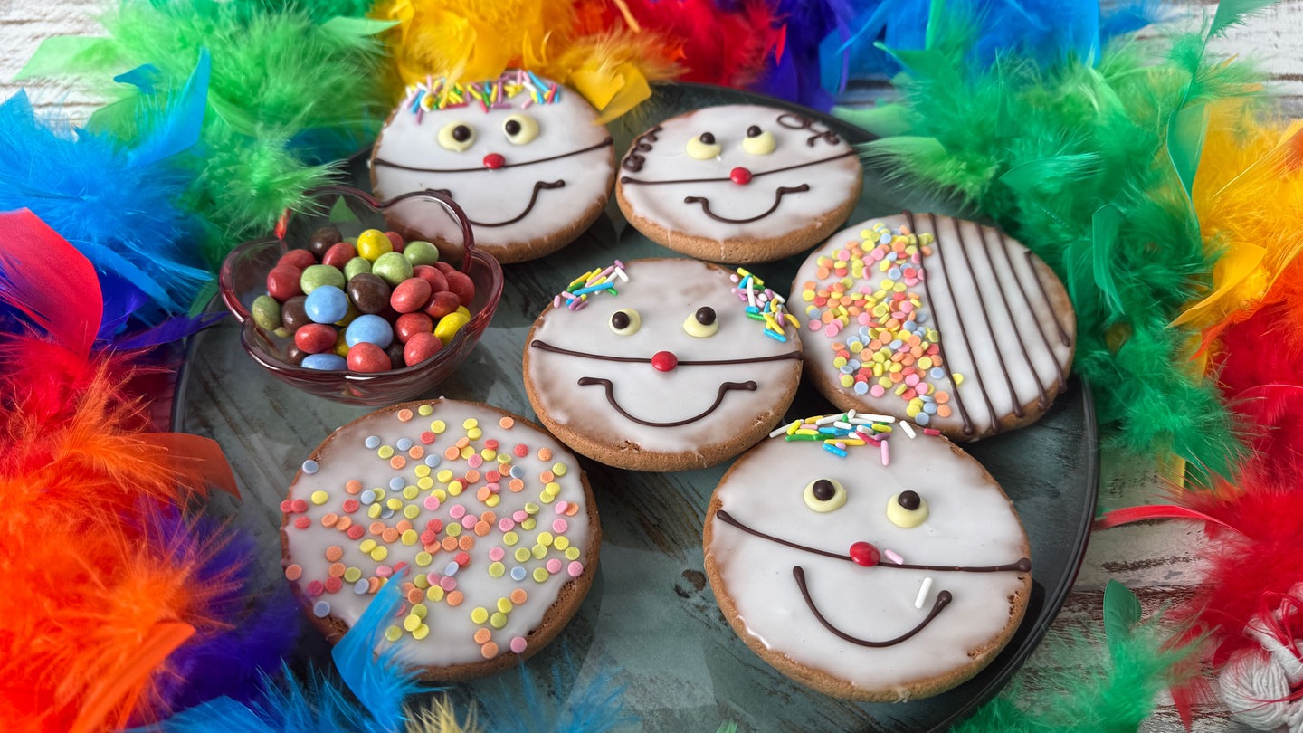 Oben bunt und innen saftig – diese Amerikaner machen Stimmung! Die süße Kleinigkeit eignet sich zum Verteilen unter Narren, macht aber auch beim Kaffeeklatsch unter Freunden Laune.
