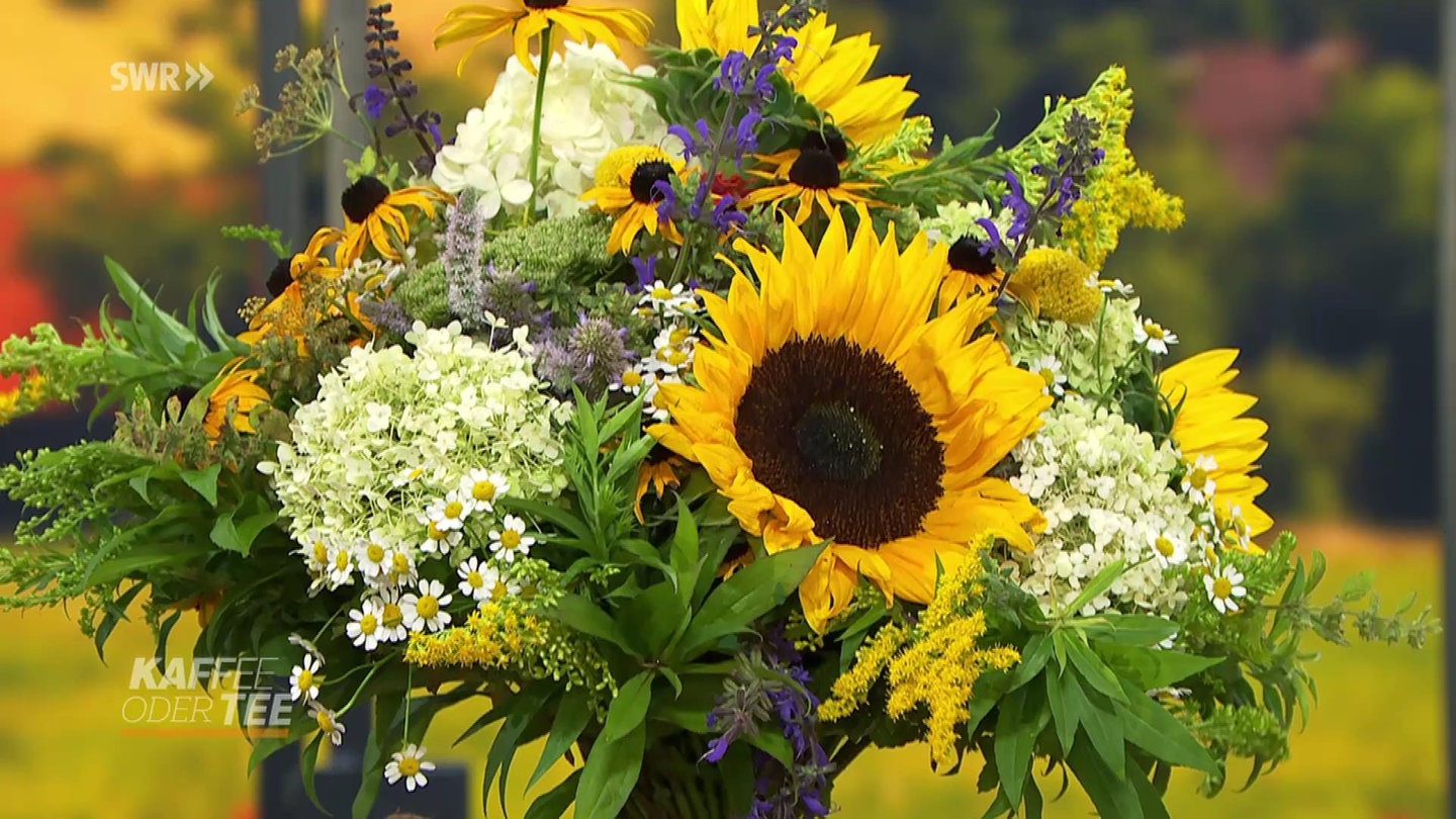 Der Hochsommer ist auch die Zeit der Sonnenblume. Floristmeisterin Marlen Dürrschnabel hat sich umgesehen, was zur Sonnenblume gut passt und den Hochsommer in die Vase bringt.