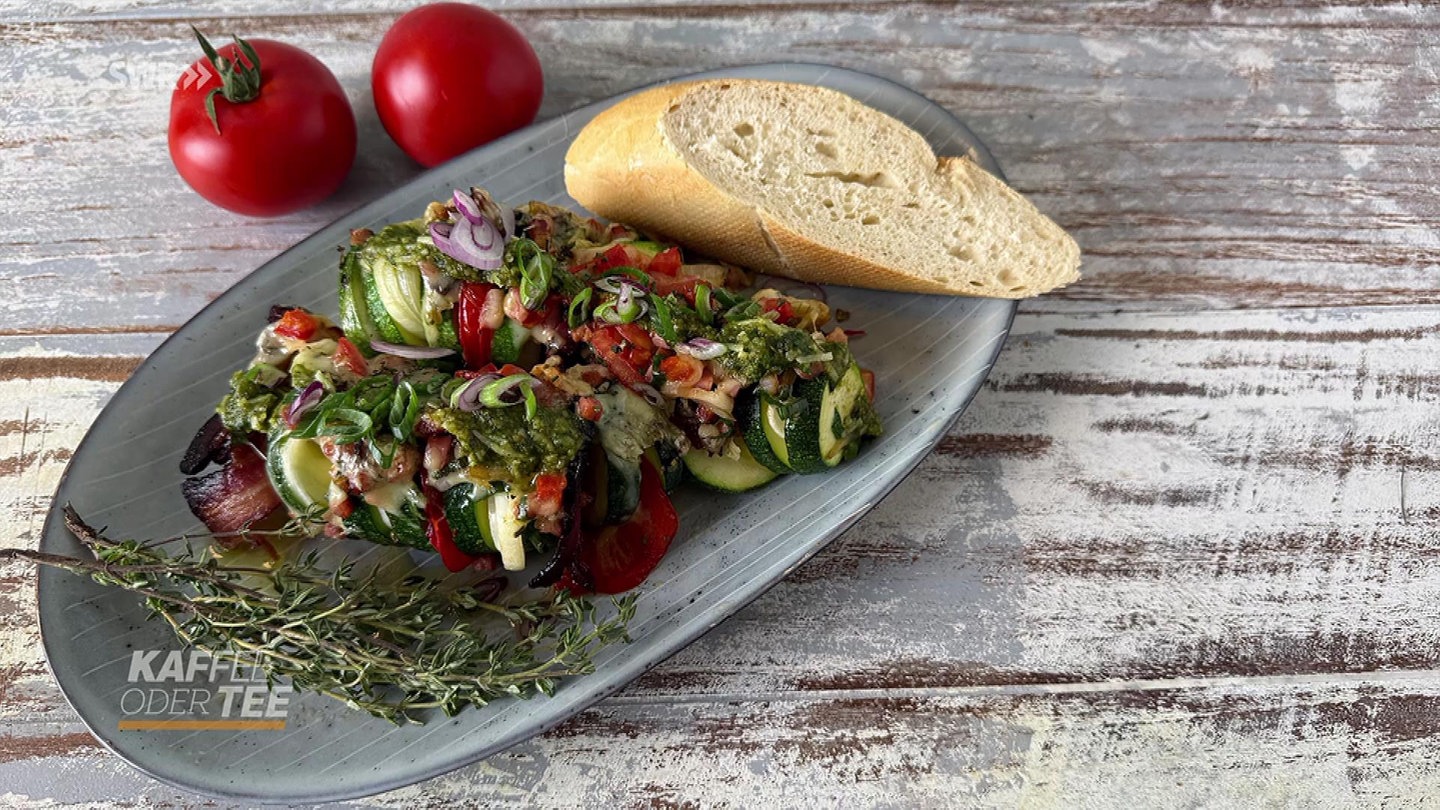 Martin Gehrlein füllt Zucchini mit Tomaten, Käse und etwas Speck und gart diese anschließend im Ofen - einfach, schnell und köstlich.