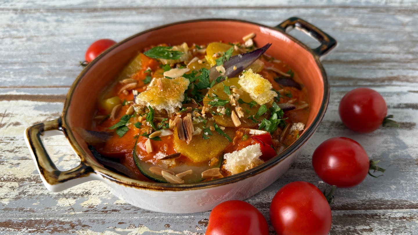 Caroline Autenrieth macht einen Kartoffelauflauf mit Sommergemüse wie Zucchini und Paprika. Anschließend wird alles im Ofen fertig gegart. Das Besondere daran: Der Auflauf schmeckt sowohl warm als auch kalt.