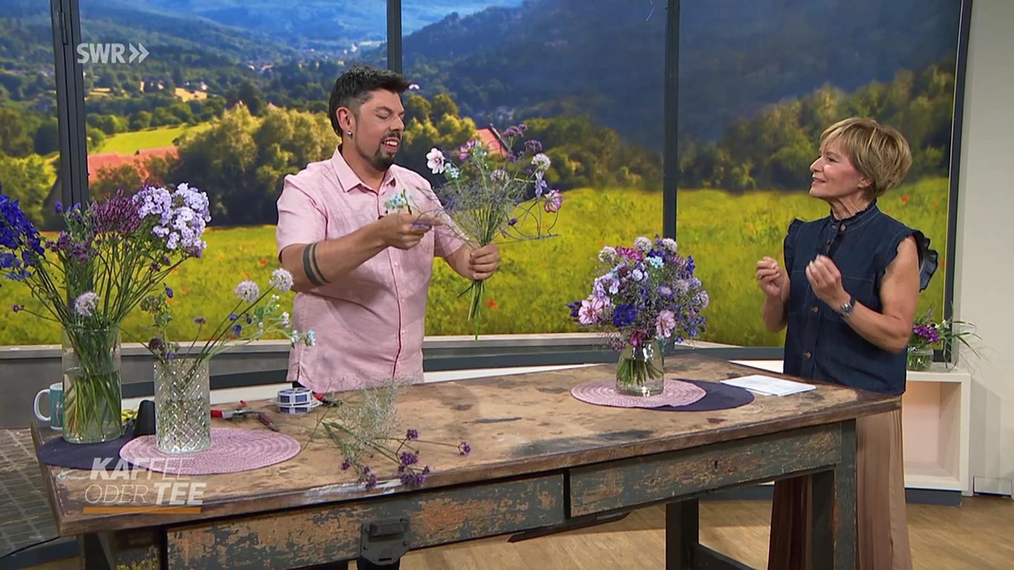 Sommerblumen haben jetzt Saison und es gibt viele Arten sie zu arrangieren. Ein ungewöhnlicheres Arrangement ist ein Strauß in Fächerform.