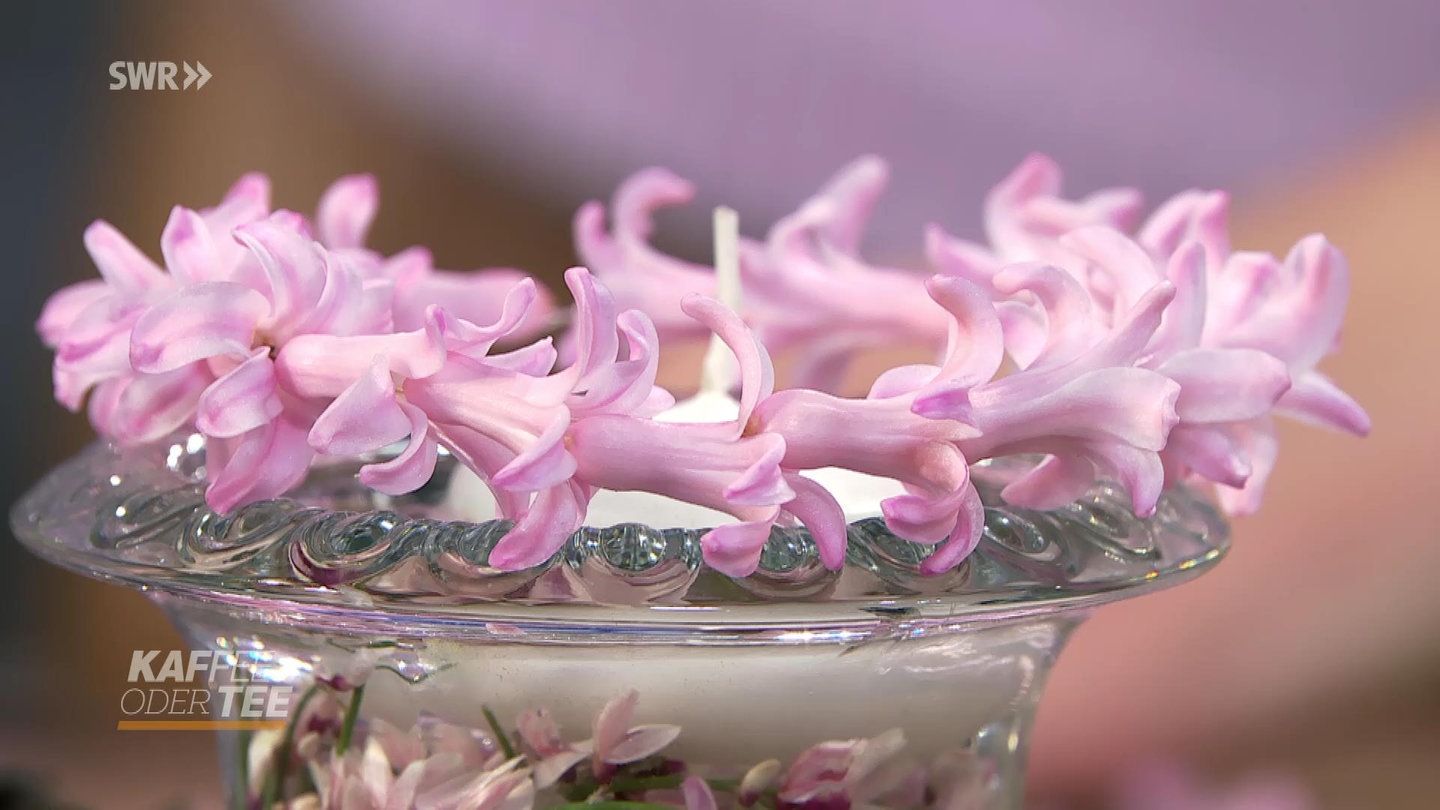 Floristin Nelli Illenseer-Schmidt hat eine frühlingshafte Idee mit Hyazinthen mitgebracht. Das hübsche Sträußchen bringt zarte Frische ins Haus, ganz in Rosa!