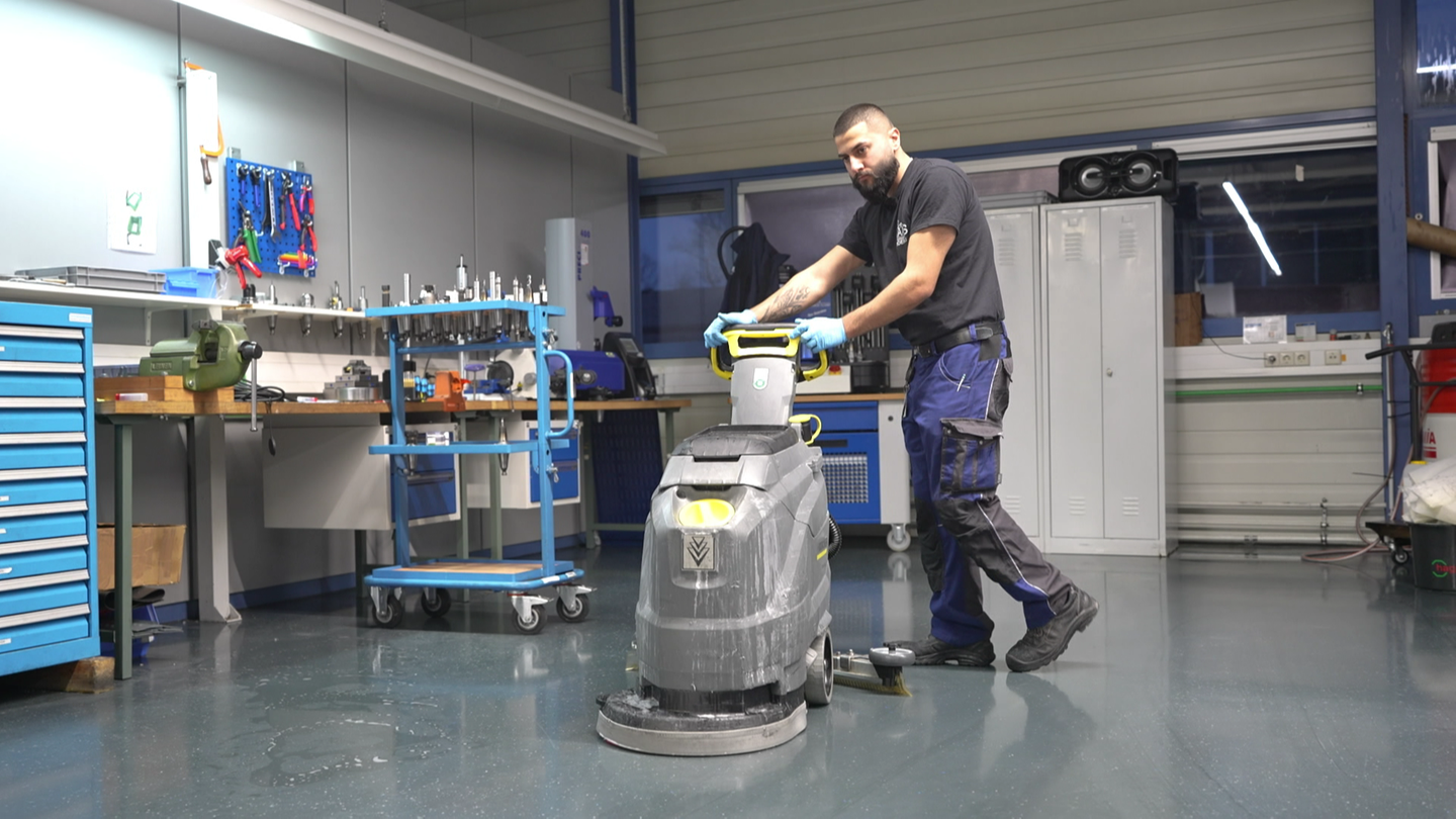 In Neuhausen ob Eck hat der kaufmännische Auszubildende Amir Mdeihli viel zu tun. Er ist ein richtiges Organisationstalent: Termine vereinbaren, Beschwerden annehmen und Ordnung im Lager halten. Der 20-Jährige lebt für die Gebäudereinigung.