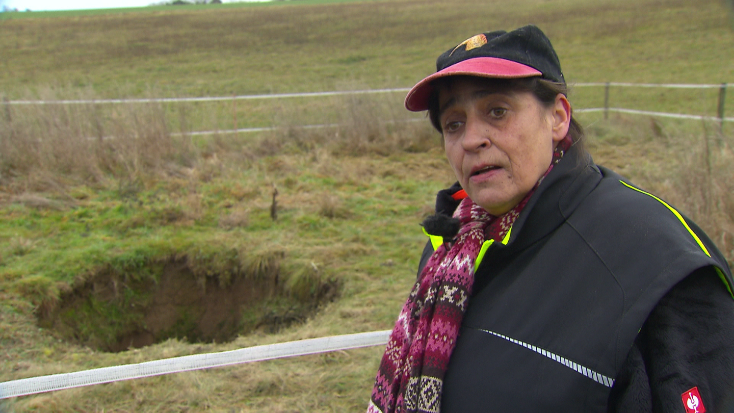 Adriana Schulz-Stubenrauch und ihr Mann Kurt betreiben seit sieben Jahren einen Pferdeschutzhof in Ravenstein im Neckar-Odenwald-Kreis. Doch jetzt sorgt der Hof für große Sorgen, denn kreisrunde Löcher, sogenannte Dolinen, öffnen sich neben den Stallungen und dem Wohnhaus.