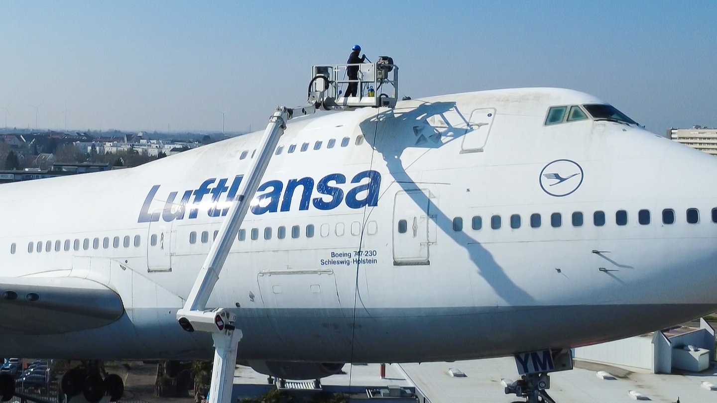 Im Technikmuseum Speyer läuft der Frühjahrsputz auf vollen Touren. Zurzeit reinigt Dawid Mail die Boeing 747 in 30 Metern Höhe. Eigentlich ist er Schlosser im Werkstatteam des Technikmuseums.