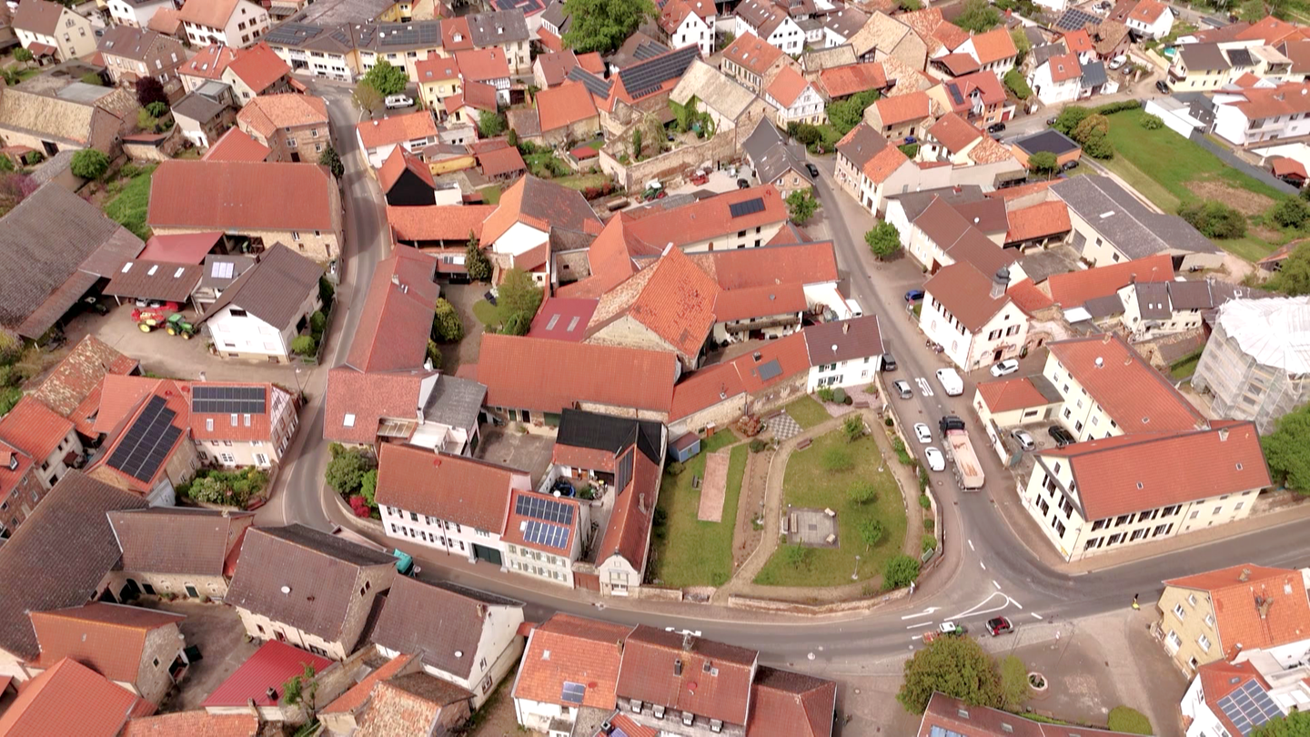 Das von den Leuten "Rondell" genannte Gassenoval bildet den alten Ortskern von Wonsheim, in dessen Zentrum der Pfarrgarten liegt.