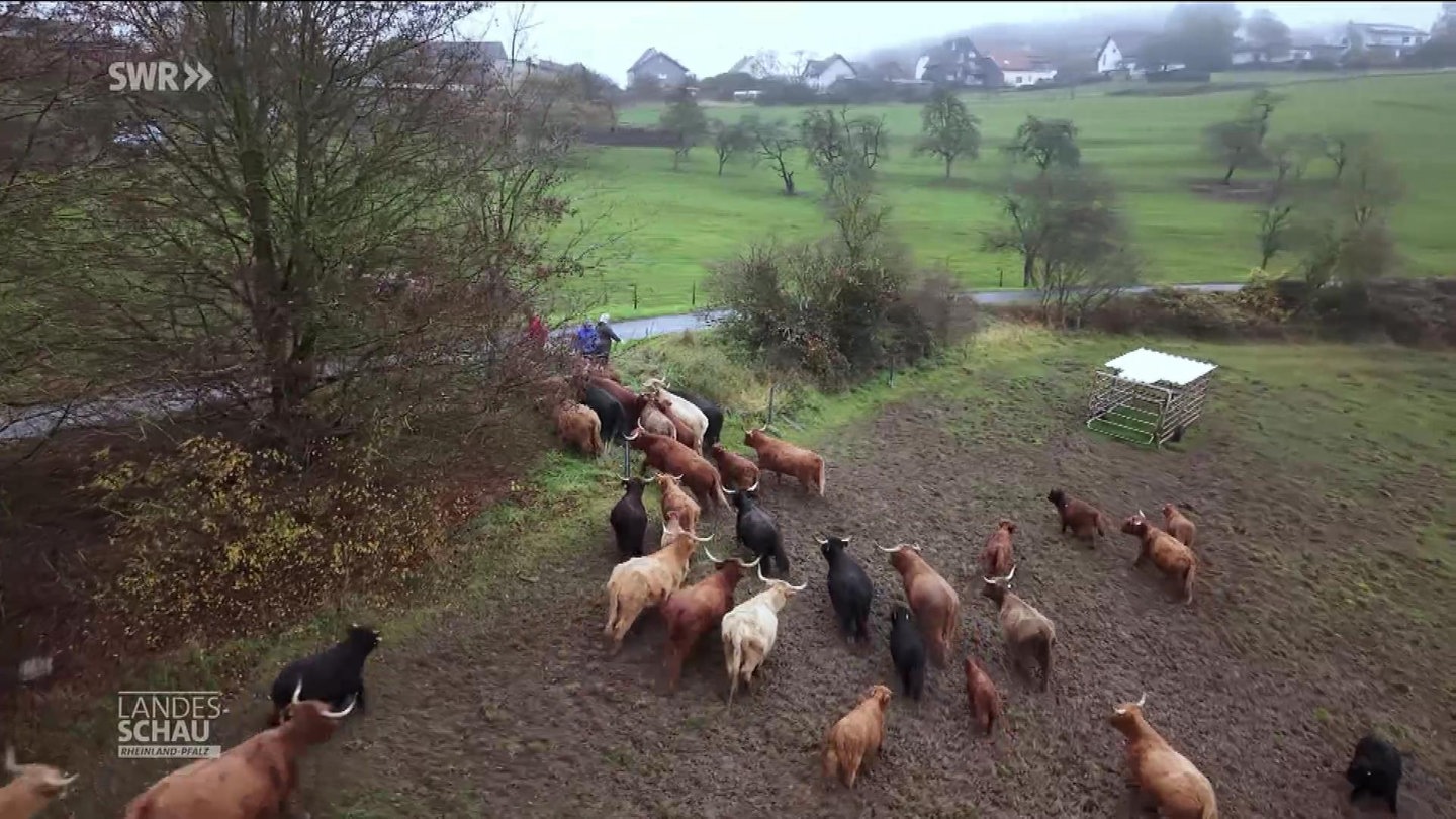 Der Winter naht und die Sommerweide bietet nicht mehr genug Gras zum maulen. Deshalb werden die Hochlandrinder auf dem Schäffehof ins Winterquartier getrieben.