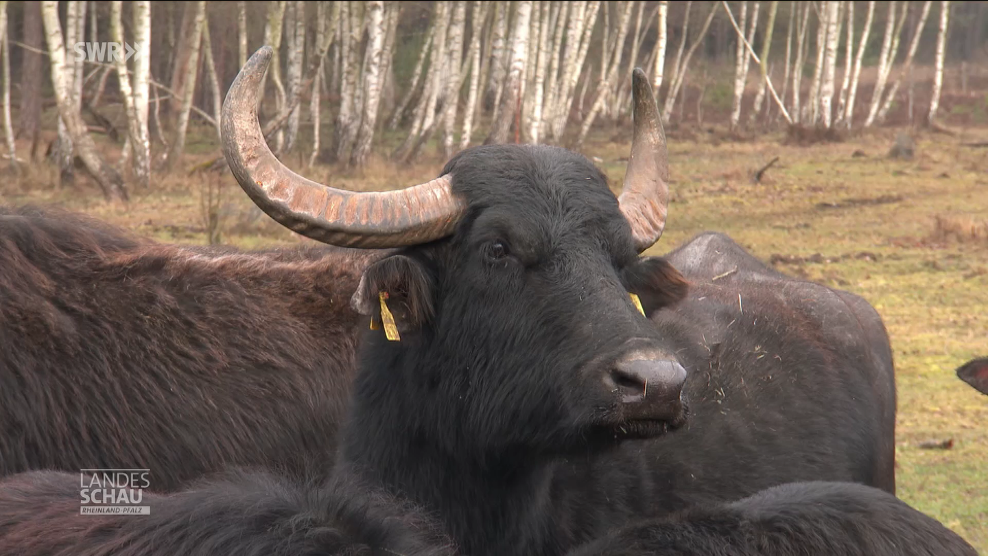 Ihre wilden Vorfahren stammen aus Asien. Neuerdings helfen Wasserbüffel bei Haßloch in der Pfalz bei der Landschaftspflege als vierbeinige Freischneider. Ihnen schmeckt, was heimische Rinder verschmähen.