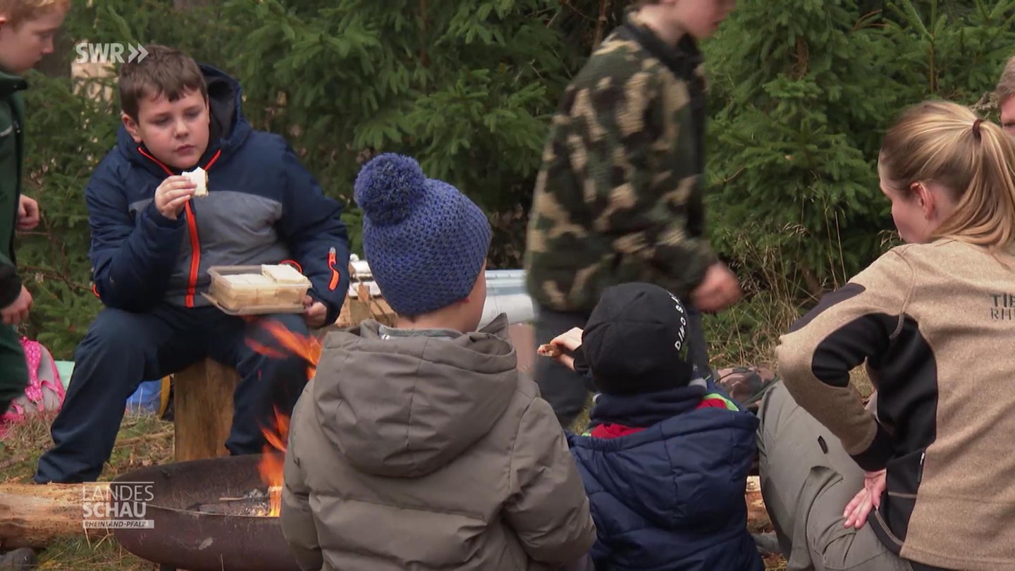 Beim Ferienprogramm im Tierpark Rheinböllen erfahren die Kinder, wie man im Wald richtig Feuer macht. Beiläufiges Lernen durch eigenes Erleben ist der Kerngedanke der naturpädagogischen Angebote in Rheinböllen.