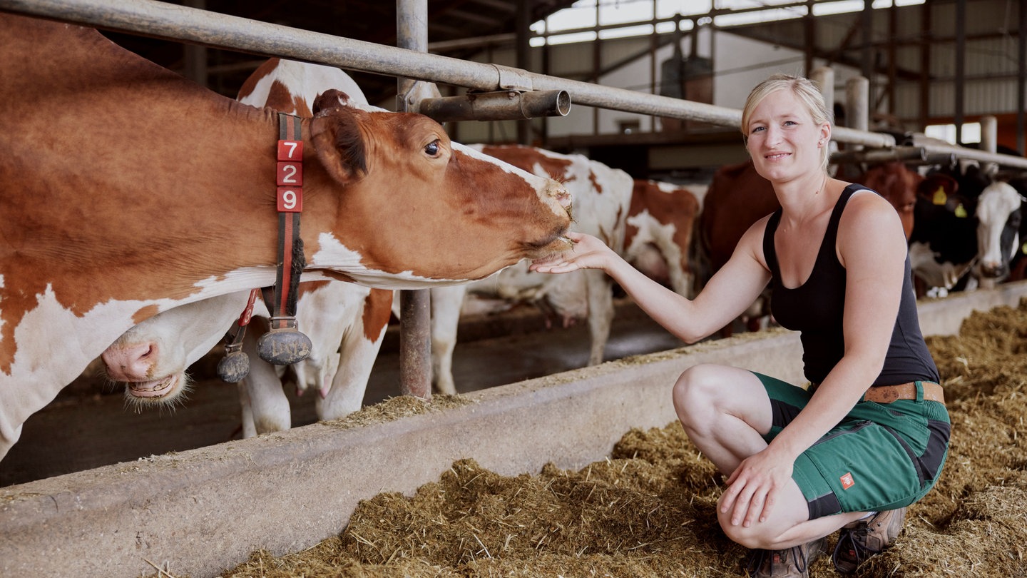 Barbara Schmitt wollte schon mit 16 Landwirtin werden. Zuerst kam das Fachabitur, dann machte sie die Ausbildung zur Landwirtin auf dem Kinne-Hof in Lebach-Dörsdorf. Inzwischen ist sie Landwirtschaftsmeisterin und mit führt mit ihrem Lebensgefährten German den Gemischtbetrieb mit Rindern, Pferden, Schweinen und Ackerland.